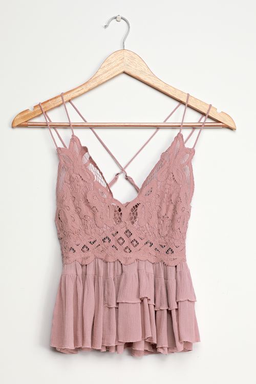 Free People Adella Cami Mauve Lace Ruffled Tank Top Mod And Retro Clothing - Shop comfy camis, basic camis, cute camis, soft camis, lounge camis, shelf bra camis, seamless camis and more from free people.